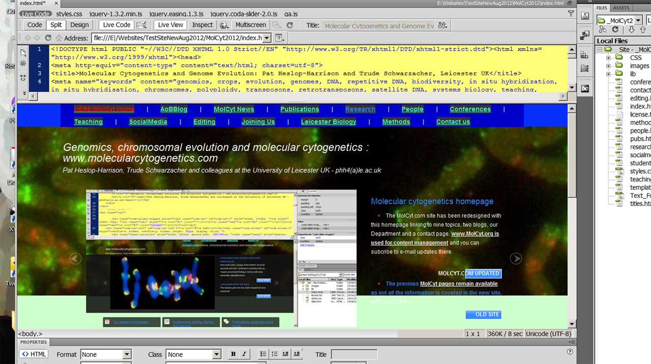 I decided to use WordPress registered at http://www.MolCyt.ORG for CMS and then RSS feeds from this site to populate content on http://www.MolCyt.COM (where it can be displayed either as single-line headline links, or complete, scrolling, posts – see for example the Conference page using my blogs from AoBBlog) . The parent .com site is still prepared from Dreamweaver, and uses various Creative Commons templates for framing the content (many of which stopped working over the years!). There is a core which still needs to be managed from Dreamweaver, not least the slider on the homepage and summaries of contents, but hopefully it will be more straightforward to populate and update.