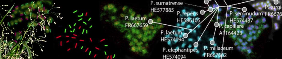 307. Hunt HV, Badakshi F, Romanova O, Howe CJ, Jones M, Heslop-Harrison JS. 2014. Reticulate evolution in Panicum (Poaceae): the origin of tetraploid broomcorn millet, P. miliaceum. Journal of Experimental Botany 65 (12), 3165-3175. DOI:10.1093/jxb/eru161 . (Link to local copy J. Exp. Bot.-2014-Hunt-3165-75)