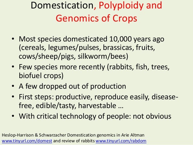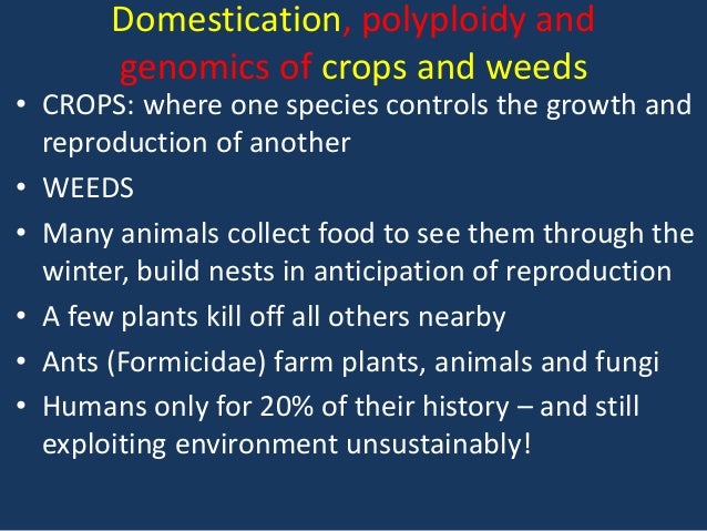 - 4. Domestication, Polyploidy and Genomics of Crops • CROPS: where one species controls the growth and reproduction of another