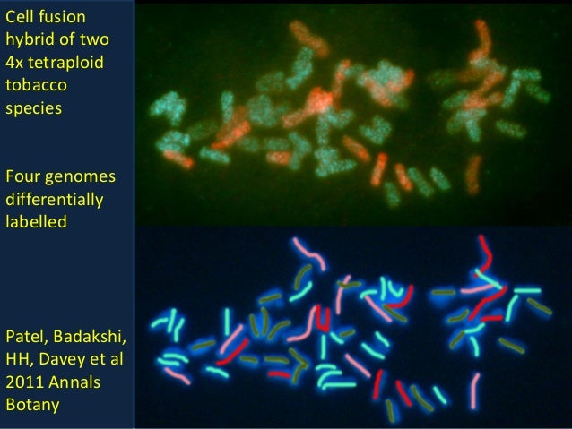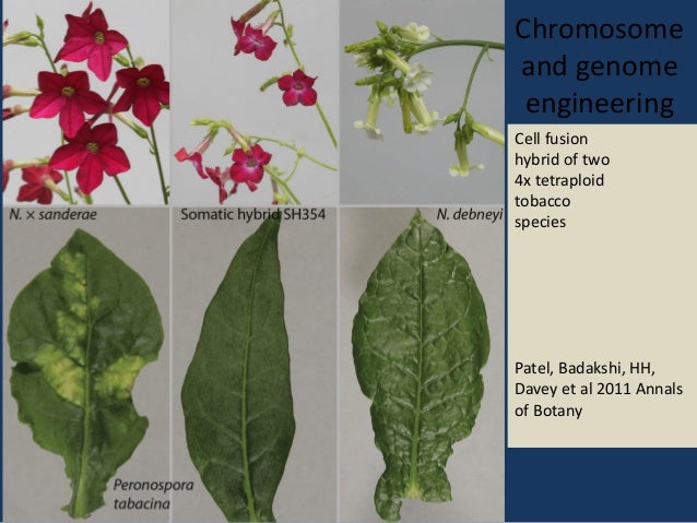 - 36. Chromosome and genome engineering Cell fusion hybrid of two 4x tetraploid tobacco species Patel, Badakshi, HH, Davey et al 2011 Annals of Botany