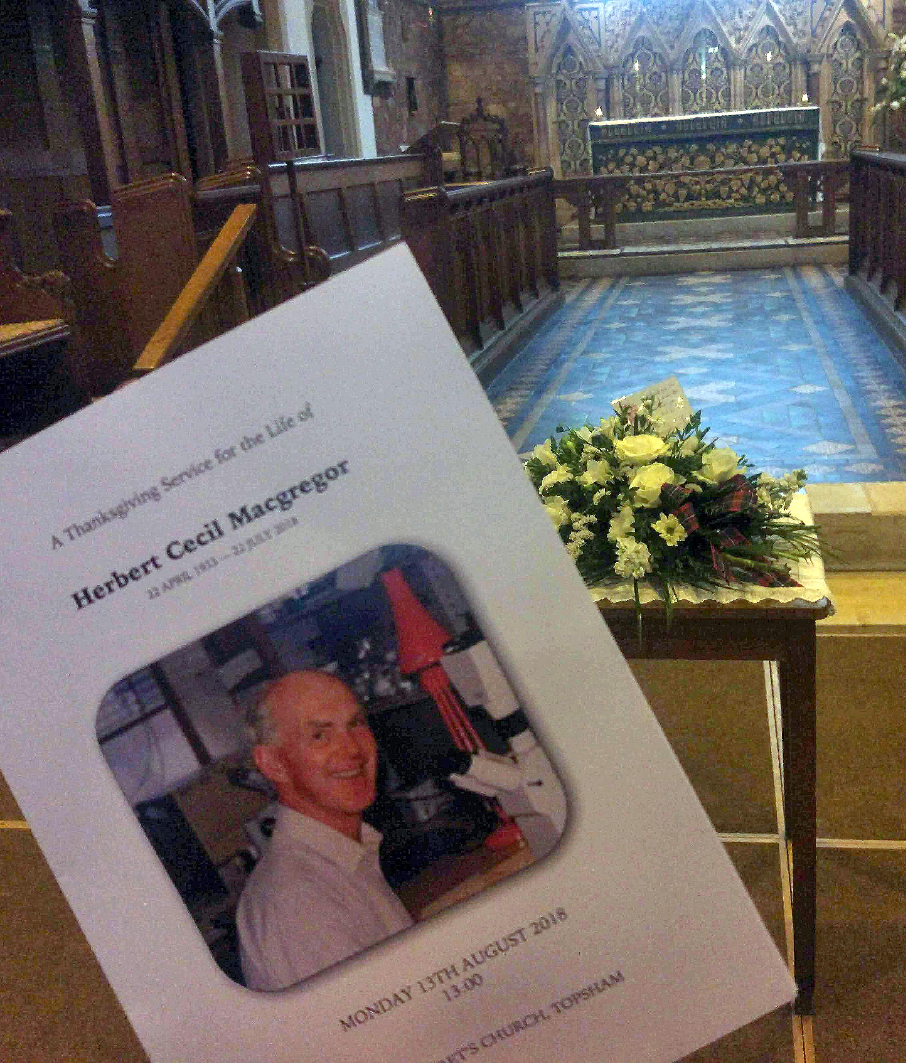 Mine was one of four Tributes delivered at Professor Macgregor’s Thanksgiving Service. Others covered his early years including National Service, his Family, and life during his retirement in Topsham, Exeter.