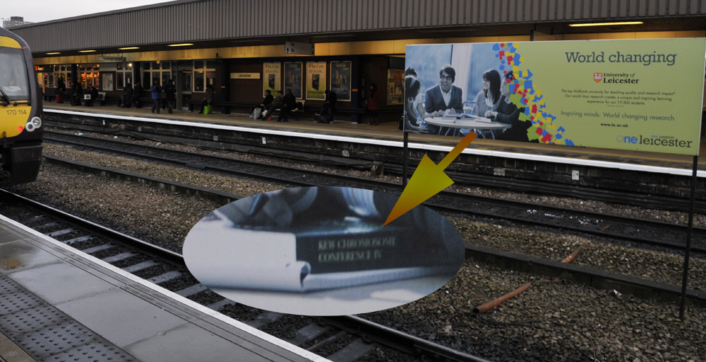 Leicester Railway Station: poster has students working with the “Kew Chromosome Conference” book we edited!